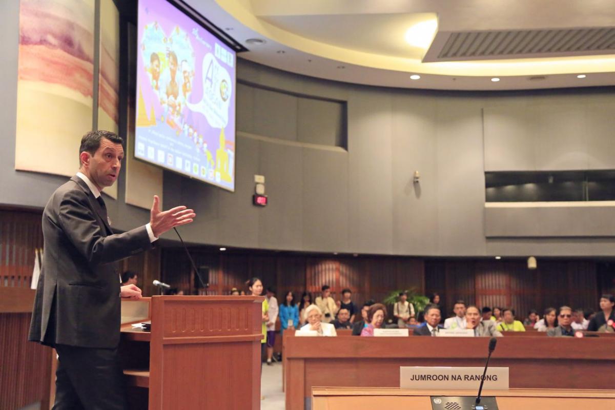 This year, the camp was organized under the theme: “Art for All ASEAN: All for Our Beloved King”. The ceremony was presided over by Ms. Kobkarn Wattanavrangkul, Minister of Tourism and Sports, Government of Thailand. Mr. Kaveh Zahedi, Deputy Executive Secretary for Sustainable Development, delivered a welcome statement on behalf of ESCAP, in which he highlighted the Art for All camp’s potential to foster creativity and empowerment; the role of the United Nations and the Sustainable Development Goals in promoting and supporting participation and inclusion of persons with disabilities to ensure no-one is left behind; and role of the children in inspiring others through demonstrating the contributions that persons with disabilities can make to the world.