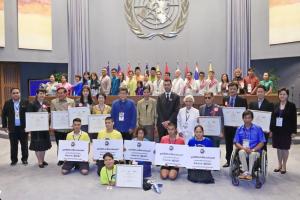 Prior to the ceremony, the students toured ESCAP’s Accessibility Centre, through which they learned about ESCAP’s work on disability-inclusive development, and had the opportunity to test out the numerous support devices available in the Centre.